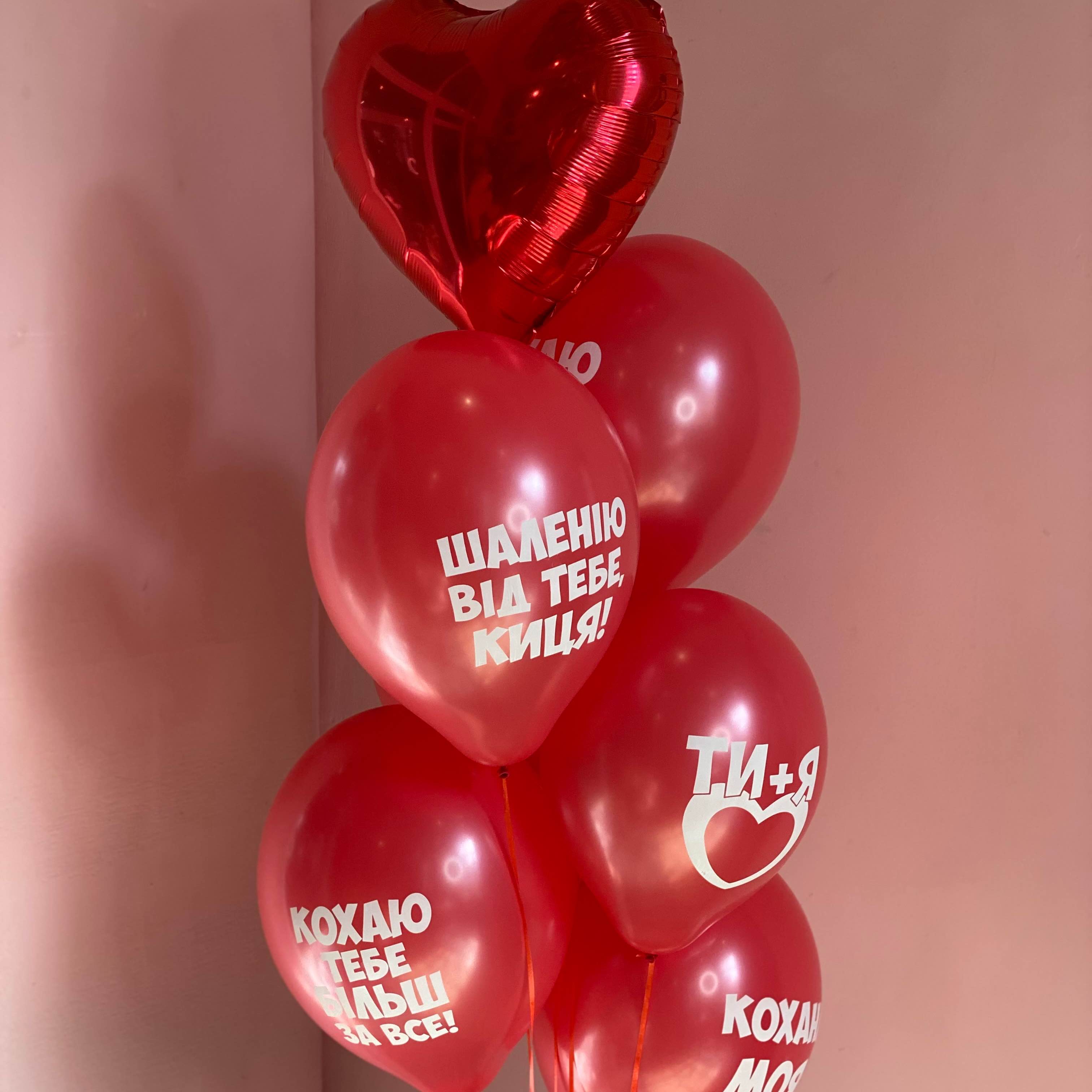 Фонтан кульок. 1 фольга серце, 6 латекс з написами.